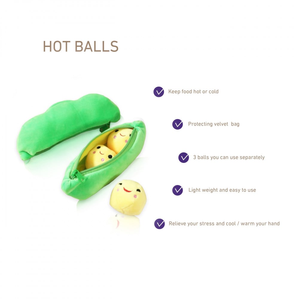 - 3 velvet balls filled with safe natural seeds with a cute , attractive shape that come inside a protecting bag.
